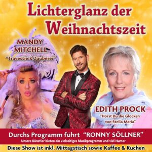 Mandy Mitchell gehört zu den international bekannten Travestie Stars und hat in ihrer einzigartigen Karriere die Illusion der blonden Verführung perfektioniert. Die Utopie ist schier formvollendet inszeniert und Mandy ist von einer echten „Femme Fatale“ nicht zu unterscheiden. Großartige magische Elemente gehören genauso zu ihrem Repertoire wie umwerfend geniale Comedy-Momente gemixt mit einer Prise Erotik. Als wäre das alles noch nicht genug, beherrscht Sie auch alle Register der perfekten Starparodie und zieht von der ersten Sekunde an ihr Publikum gekonnt in den Bann.